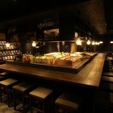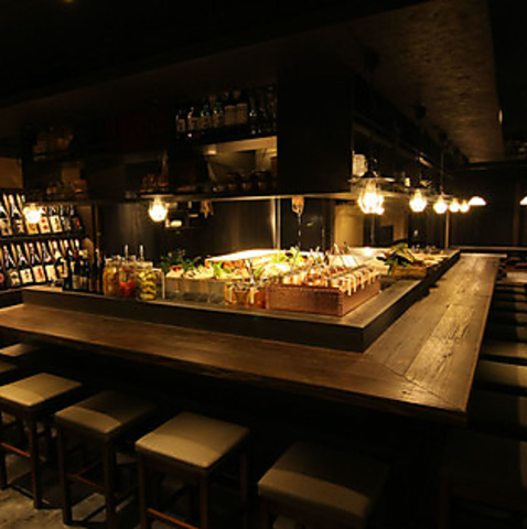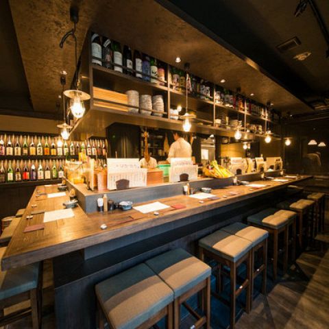 黒を基調としたインテリアが醸し出すシックな雰囲気の空間は、様々なシーンで活躍。日常デートや気の置けない友人との飲み会など、ゆっくり語り合いたい夜のディナーにぜひ。目の前で調理を見られるので、ふたりの会話もさらに弾みます。おひとり様でもしっぽり飲むことが出来ます♪