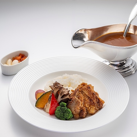 Spicy chicken curry comes with salad【アレルゲン Allergy】小麦/乳/卵 Flour/Milk/Egg