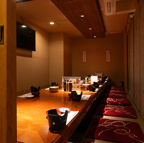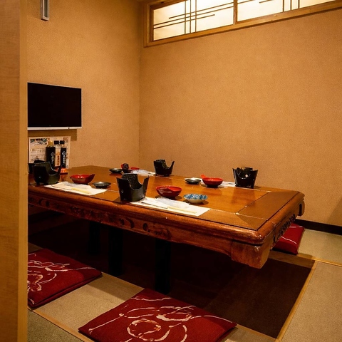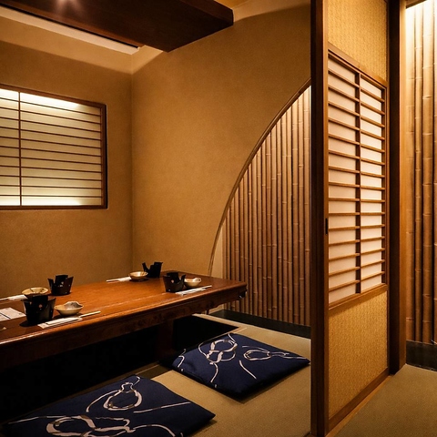 ゆったりとした掘りごたつ個室は、落ち着いた和の空間でくつろげる人気のお席。少人数からグループ利用まで対応可能で、宴会や接待にも最適。博多の新鮮な海鮮とともにゆったりとした時間をお楽しみいただけます。