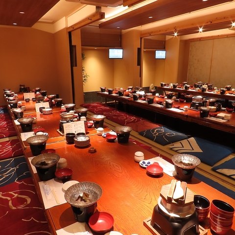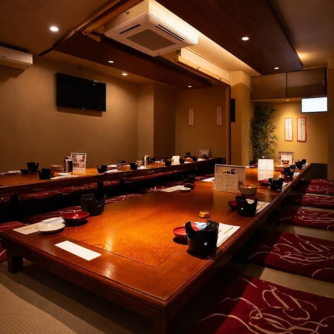 | 掘りごたつ個室 | 60名様×1 | ゆったりとした掘りごたつ個室は、落ち着いた和の空間でくつろげる人気のお席。少人数からグループ利用まで対応可能で、宴会や接待にも最適。博多の新鮮な海鮮とともにゆったりとした時間をお楽しみいただけます。 |