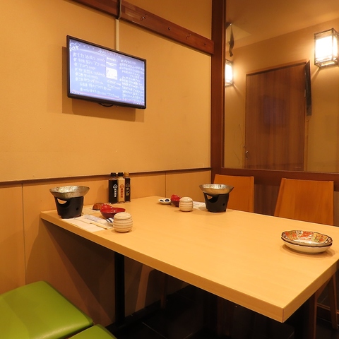 落ち着いた雰囲気の個室席は、デートや少人数での食事に最適。周囲を気にせずゆったりとくつろげる空間で、博多の新鮮な海鮮料理をじっくりお楽しみいただけます。