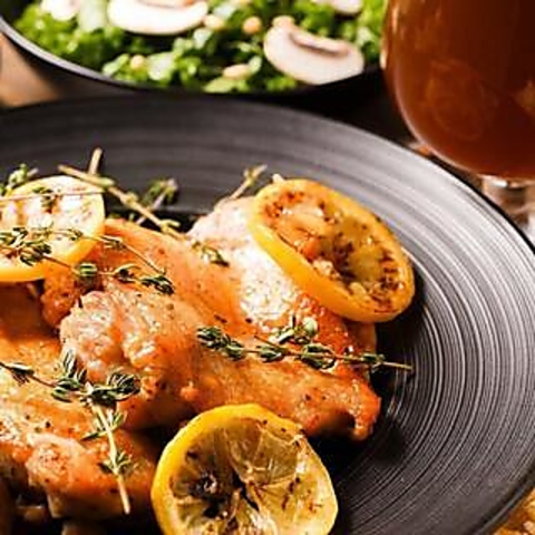 樽生ビール、赤白ワイン、カクテル、ソフトドリンク飲み放題!お食事は『レモンペッパーチキン』をメインに『ベルジャンフリッツ』『グリルソーセージ盛り合わせ』等人気メニューが盛り合わせになった曜日限定のお得なコース♪+700円でベルギークラフトビール3種類も追加で飲み放題にできます!