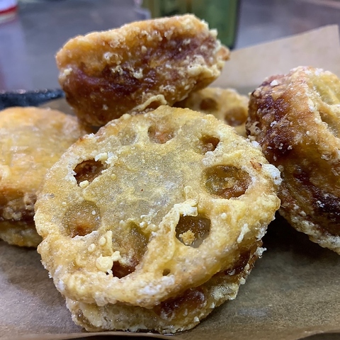 豚肉の旨味が詰まった挟み揚げは、外側のカリカリとした食感と中のジューシーさが絶妙に調和しています◎さらにシャキシャキのレンコンが加わることで、食べるたびに新しい発見がある楽しさ!お酒との相性も考え抜かれた一品が、友達との楽しい時間を演出します♪この美味しさを、ぜひ試してみてください★