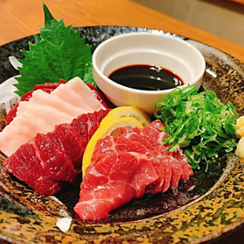 熊本直送の極上馬刺しを贅沢に盛り合わせ。鮮度抜群でとろける食感、濃厚な旨みが口いっぱいに広がります。熊本出身オーナーが太鼓判を押す本場の味をぜひ。