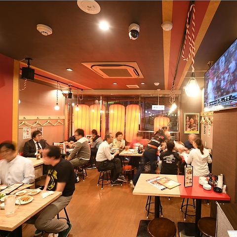 気軽に入れるカウンター席は、気の合う仲間との歓送迎会や飲み会・打ち上げ2次会にもおすすめ!カープ観戦後や仕事帰りのサク飲みに立ち寄りやすいカウンター席!歓送迎会の2軒目3軒目サク飲みやご宴会も◎単品飲み放題もありますので餃子+飲み放題で盛り上がろう!カープの試合放送中!いっしょにみんなでもりあがろう