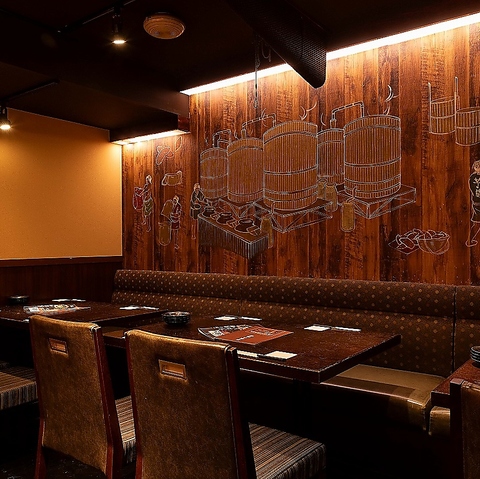 デートから接待までお使いいただける個室を多数ご用意しております。ゆったりとした暗めのソファー席から希少な焼酎を見渡せる個室までシーンに合わせてお選びいただけます。