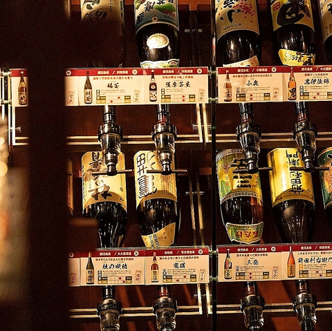 こだわりの焼酎はその数200種以上!1杯シングル350円ダブル540円でお楽しみいただけます。(プレミアム銘柄除く)季節限定や鹿児島でしか手に入らない焼酎も多数ございますのでスタッフまでお気軽にどうぞ!