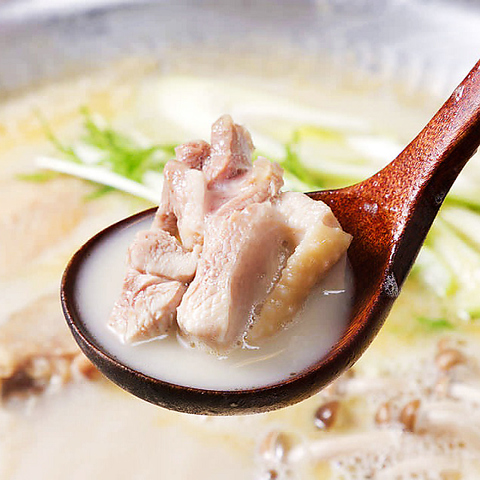 大好評♪鶏白湯の水炊きコースは濃厚な鶏の旨味が楽しめます。定番の「塩ゆで枝豆」「皮付きポテトフライ」「彩サラダ」や「なにわのおつまみ餃子」デザートの「白玉団子」等が付いた接待や歓送迎会に最適の内容となっております。一度食べたら忘れられない濃厚なスープを是非体感してください☆