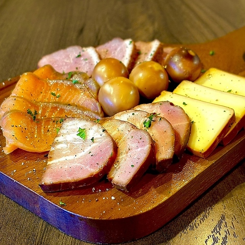 前菜系人気No1のワインによく合う燻製の盛り合わせです!燻製はすべて自家製!口に含んだ瞬間にスモーキーな香りと各食材の旨味が広がります♪単品でご注文するよりずっとお得なので色々迷ったときにはこちらがおすすめです!基本は2名様用ですが、お1人様にはハーフサイズでのご提供も可能ですので、お気軽にスタッフまでご相談ください♪