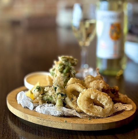 早くももうすぐ3月!春の旬物『菜の花』と『ヤリイカ』を使ったフリットがスタートです★ふんわりだけどサクッと揚げたフリットに自家製生アイオリソースのパンチと清々しい酸味がベストマッチです♪