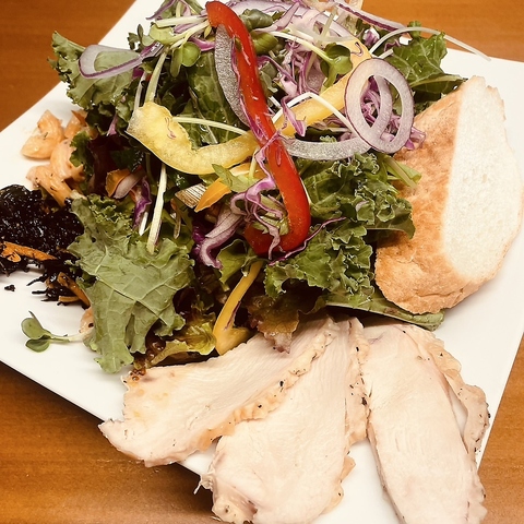 【Point】★旬な野菜をたっぷり使用!!★野菜不足が気になっている方にもオススメです★3種類のドレッシングを全てお持ちします。(野菜レモン/ごま/わさび) ※《レアチーズケーキドリンクセット》1100円(税込)