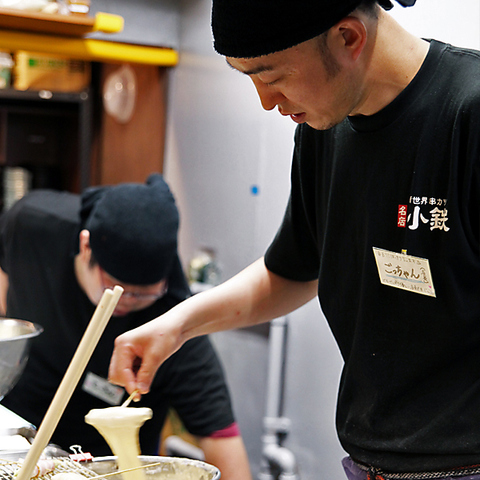 目の前で揚げる小鉄自慢の「串カツ」を出来たてアツアツを召し上がれ!仕事帰りにフラッとお立ち寄りください!