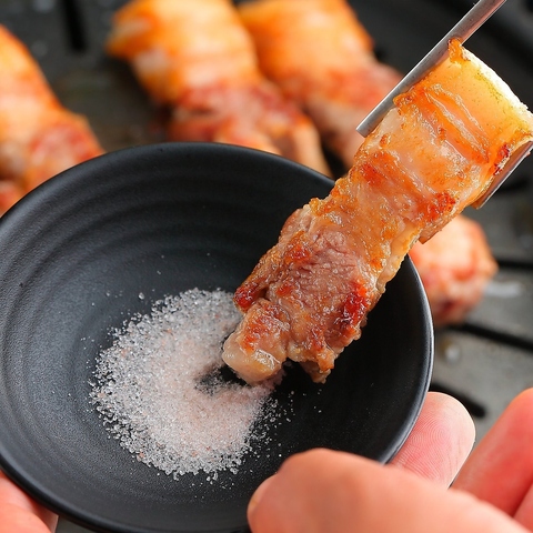 大きさにWow(王)!味もWow(王)!!分厚い王豚塩焼の肩ロースは3.5cmの厚さで提供しております。サムギョプサルと共に、14日間の熟成を行い、柔らかい食感を持っております。分厚い肉で肉汁を感じることが出来ます。サムギョプサルとは一味違う、熟成肩ロースもオススメです。