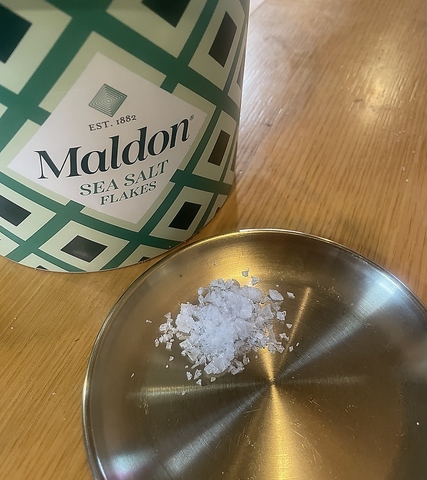 マルドンの塩は、天然塩、シーソルイギリス産。サクサクとした心地よい食感。