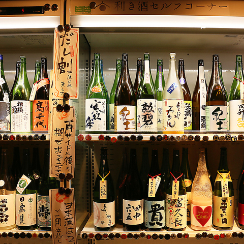 約100銘柄の日本酒をセルフでお飲み頂けます。生ビールやハイボール、酎ハイもご用意!稀にプレミアムな日本酒を発見できるかも!