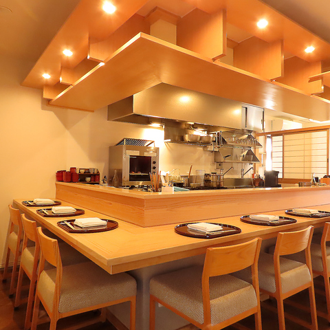 目の前で料理の様子が楽しめるカウンター席です。粋の良い職人さん達の手さばきも楽しめますのでお1人様の来店でも楽しめます。少人数でもゆっくりお過ごしいただけるカウンター席でございます。