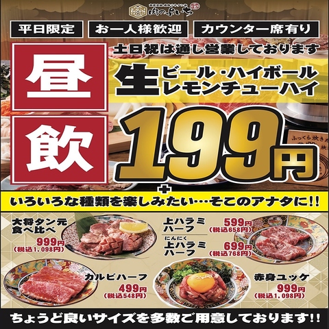 土、日は通しで営業しております!昼飲みやランチにも!質の良い和牛を気軽にコスパ良くご堪能いただけます