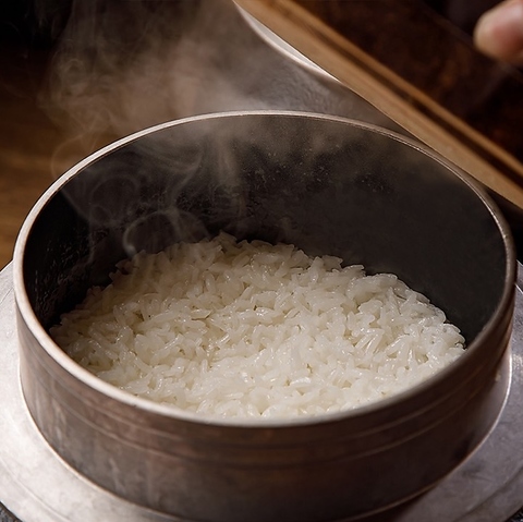 創業100年の老舗米屋「名将」監修のオリジナルブレンド米≪よいち米≫は本当にお肉に合うお米を追求し誕生した特選米です。甘み際立つひと粒ひと粒を全卓上で炊き上げ、噛めば噛むほど甘さが増す、タレとの相性も抜群のご飯です♪ ※炊き上がりまで約20分かかります