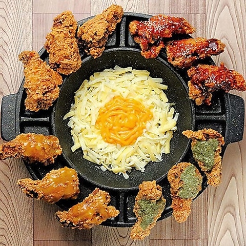 UFOチキンは、いろいろな味の骨つき鶏の唐揚げをとろけるチーズをたっぷりつけて食べる人気の韓国料理!今、韓国グルメを食べるならはずせない逸品です。お席は、50名以上の大人数宴会にも対応可能!