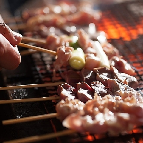 備長炭で焼き上げた名物鶏皮串。外はカリッ、中はジューシー。お酒との相性抜群!当店一番人気の名物メニュー!鶏皮串は、香ばしい炭火の香りがクセになる逸品。塩・タレの2種類から選べ、ハイボールやビールと相性抜群。まずはこれを注文する方がほとんど!