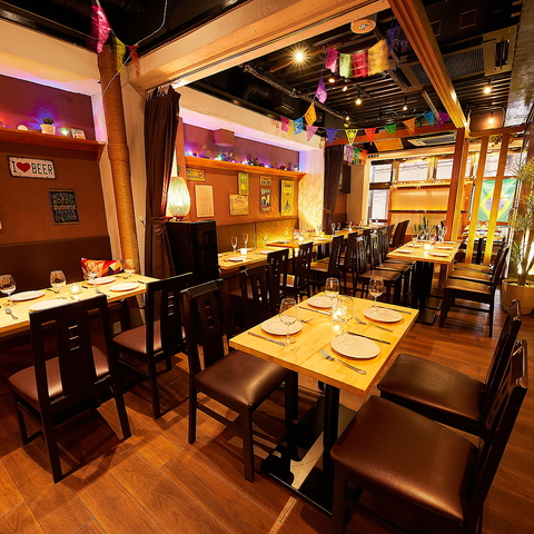 ラテンムード漂う空間エキゾチックでカラフルな空間に生まれ変わり、カーテンの仕切りを用いた宴会用半個室がご用意可能に◎人数に合わせてテーブルを組み替えられますので、お気軽にご相談ください♪