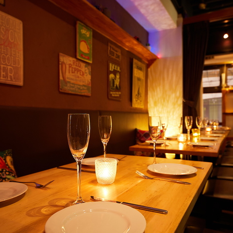 【各種ご宴会・デート・誕生日にも】2~50名様まで対応可能。バルの雰囲気をお愉しみいただける上質テーブル席。※ご予約や貸切のご相談等もお気軽にお電話にてお問い合わせ下さい。