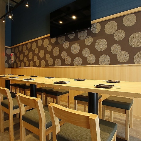 20名様以上の完全貸切宴会を承っております。アットホームな空間で、こだわりの日本酒と肴を楽しむプライベートな日本酒パーティーが実現します。明るい木目の内装と温かな照明が心地よい雰囲気を演出。レイアウトの変更も可能なので、人数や用途に応じて自由にご利用いただけます。貸切の際は、コースのご注文をお願いしております。