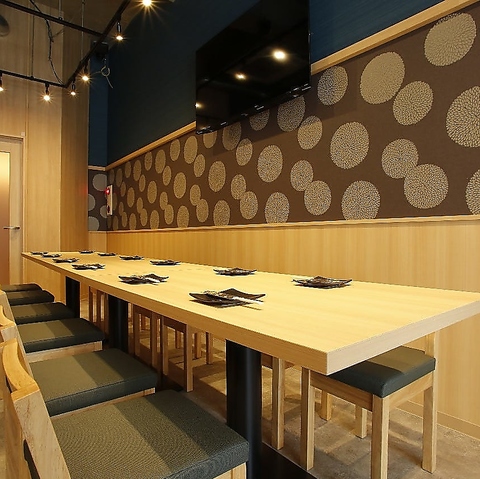 当店のカウンター席は、おひとり様や2名様でのしっぽりとした飲み会にぴったりのスペースです。目の前で料理が作られる様子を楽しみながら、日本酒と共に豊富な珍味を味わうことができます。特に、選りすぐりの日本酒と合わせることで、料理の魅力が一層引き立ちます。落ち着いた雰囲気の中で、リラックスしながら美味しい料理を堪能できる♪