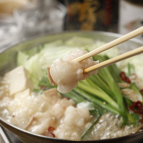 ほまれのモツ肉は新鮮な状態で最適な処理を施したものを仕入れており、非常に柔らかいうえ臭みがなく、口の中に甘みがひろがります。3種のもつ鍋(塩)は新鮮なモツをシンプルに、あっさり塩味で。(醤油)は本場九州の醤油をベースに四種類の醤油を配合した自慢のスープ(味噌)は深みのある味噌味。濃い目の味付けはお酒に合います。