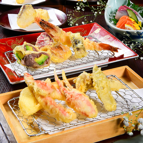 季節の美味しさを楽しめる天ぷらコース。ランチ(要予約)・ディナーでご利用いただけます。