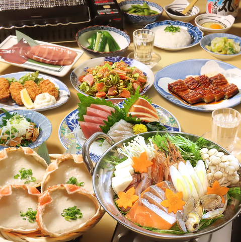 あったかお鍋、蟹味噌など磯丸の人気メニューが大集合!!ダントツ一番人気のこのコースは各種宴会にもぴったり♪♪もちろん飲み放題付きです☆