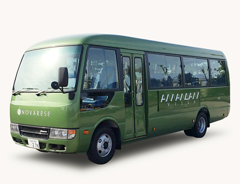 行きも帰りも安心の送迎バス無料サービス。30名様以上のご予約で承ります。25名様乗り。