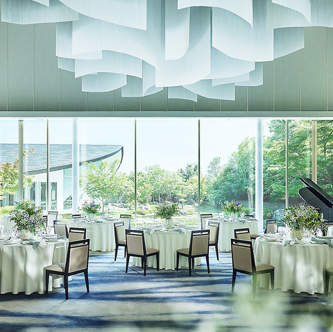 長良川をこえた閑静な住宅街に佇む無駄のない美しいフォルムが印象的なデザイン空間。ダイニングに付設するオープンキッチンや内階段からの演出も可能な大型パーティー宴会専用会場です。