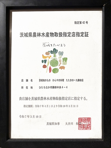 当店は、地産地消を応援する店舗として農林水産物取扱指定店に認定されました!