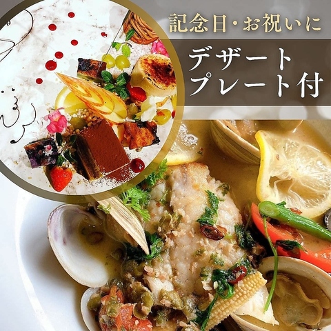 【料理のみ】 記念日やお祝いに◎旬食材を使用した特別プラン「デザートプレート確約コース」7,500円