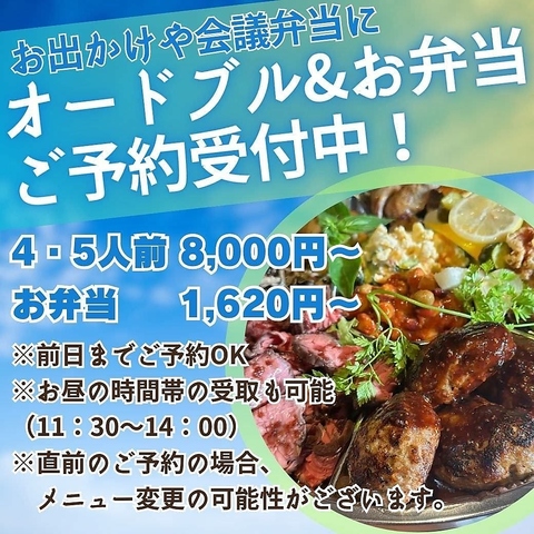 ときわ公園でのピクニックや友人宅へのお呼ばれ時に、みんなで楽しめるオードブルや、いつもよりちょっぴり豪華なお弁当はいかがでしょうか!会社仲間やご家族、友達と一緒にぜひご利用ください◎※前日までご予約OK・お昼の時間帯の受取も可能です(11:30~14:00)※直前のご予約の場合、メニュー変更の可能性がございます。