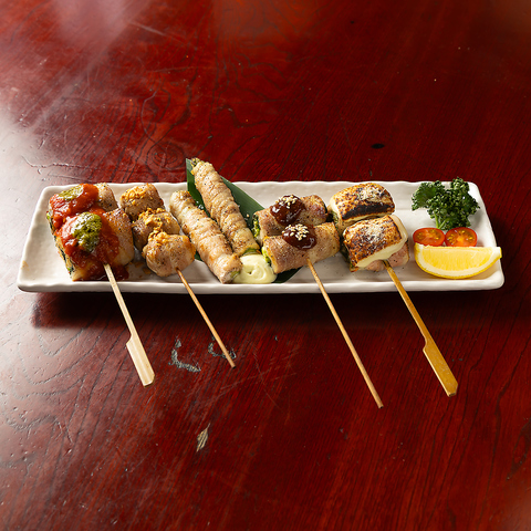 たっぷり野菜をお肉で巻いたヘルシーな一品!!種類豊富なので全部食べたくなっちゃいます★焼きだけじゃなく、蒸し串もご用意しております♪