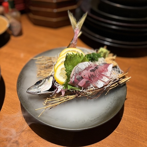 市場で仕入れたピチピチの新鮮な鮮魚を贅沢にお刺身でお召し上がりいただけます。一人前もできます。