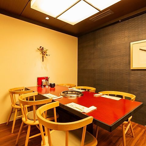 接待やお祝い事などに最適な完全個室をご用意しております。周りを気にせず焼肉をお楽しみいただけます。※こちらのお席は完全2時間制、またサービス料として10%いただいております。