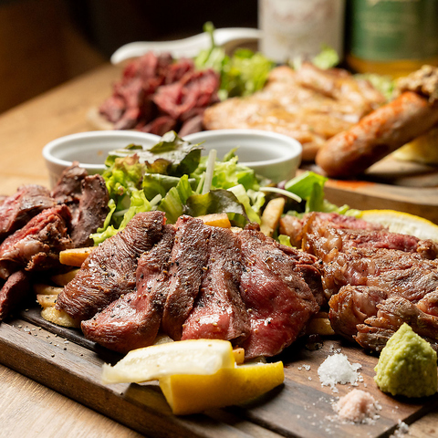 本格肉バルのので最強の肉盛りを楽しんでいただきたい!ワインとともに肉を存分に楽しむ。そんなひと時をお過ごしください。肉盛りの他、目の前で炙る肉寿司や海老のアヒージョ…多彩な肉メニューでお待ちしてます♪
