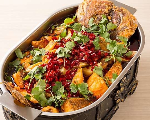 ◎一台(4~6名向き)¥4850!船上で血抜きし、冷凍しない状態の鱸(スズキ)又は鯛を当日仕入れてご用意しているので鮮度抜群。しっかりと麻と辣を活かして仕上げた料理をお楽しみ下さい。