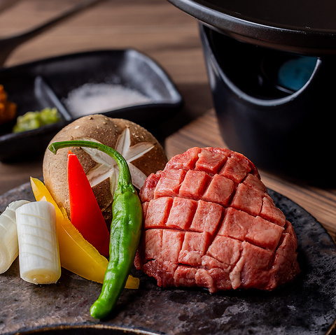 当店の自慢の食材は【A5黒毛和牛】。キメ細かいサシとトロリとした舌ざわりは味わったことのないおいしさ。室温で溶けてしまうのでないかと思うほどの脂の乗り具合。一水にご来店頂いたら必ずお召し上がりいただきたい逸品です。宴会コースはもちろん、単品でもご用意しておりますので是非ご賞味ください