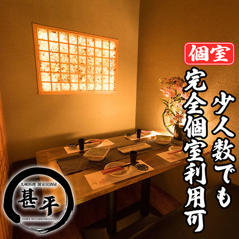 【2名様向けプライベート和風個室】都会の騒音を忘れられる扉付き完全個室でございます。大人気のお部屋となりますので、ご予約はお早めに…。南越谷駅近の和風個室居酒屋「甚平」は2名個室料金は一切頂いておりません。南越谷の和食完全個室居酒屋で素敵な宴をお楽しみください。