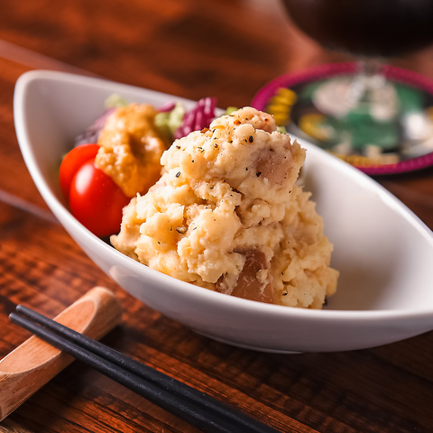 燻製で楽しむものはチーズやお肉だけではありません!ポテトサラダやサバの燻製はウイスキー樽を砕いたチップで燻した当店人気のメニュー!未体験の燻製料理に新しい美味しさが発見できること間違いなし!