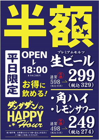 【平日限定】HAPPY HOUR開催中!ビールもレモンサワーも餃子と一緒にお得に飲めます!