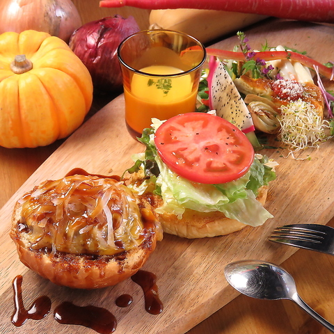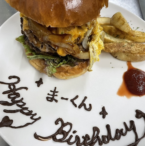 名物国産ハンバーガーをお見逃しなく!鉄板焼きでジューシーに仕上げたパティに、様々な野菜とオリジナルソースを香ばしいバンズで挟んだボリューミーな逸品。ランチはもちろん、ディナーやテイクアウトでもお楽しみいただけます♪