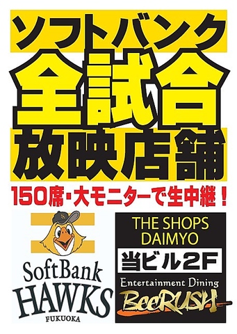 プロ野球ソフトバンクホークス戦全試合放映致します♪是非一緒に応援しましょう♪他スポーツも受付中!