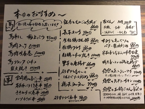 他で見ることのできない沢山の創作料理を是非!グランドメニュー、おすすめメニュー充実してます!居酒屋料理の概念がきっと変わります。