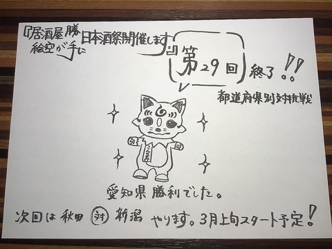 居酒屋絵空が勝手に日本酒祭開催します。第29回都道府県別対抗戦が終了しました!