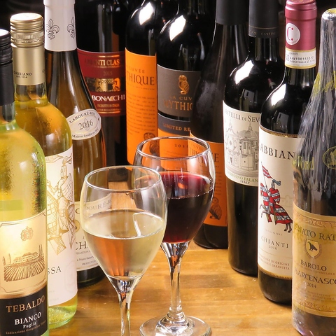 美味しいお料理と一緒に相性の良いドリンクはいかがでしょうか・・・?ワインやスパークリングワイン等もご用意しております♪世界各国のワインを、オーナー自らが選んで取り扱っています!どのお料理とも相性抜群ですのでぜひお試しください♪その他各種コースは飲み放題完備、お席ご予約でも使える単品飲み放題もございます◎